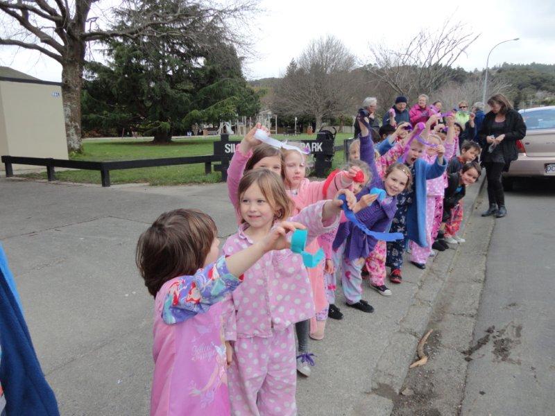 In the afternoon we went to be part of the parade to honour paralympian Mary Fisher. She used to go to Silverstream School. It felt a bit strange being outside in our pyjamas!